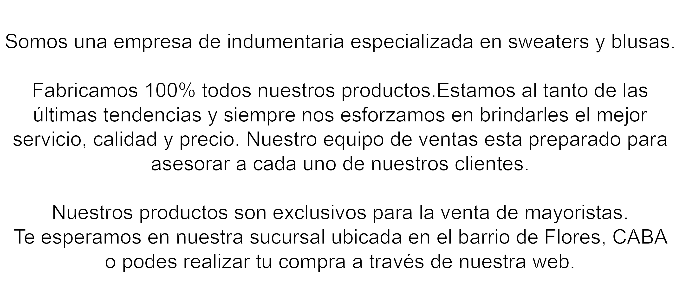 Somos una empresa de indumentaria femenina especializada en la fabricación de Blusas y Sweaters.